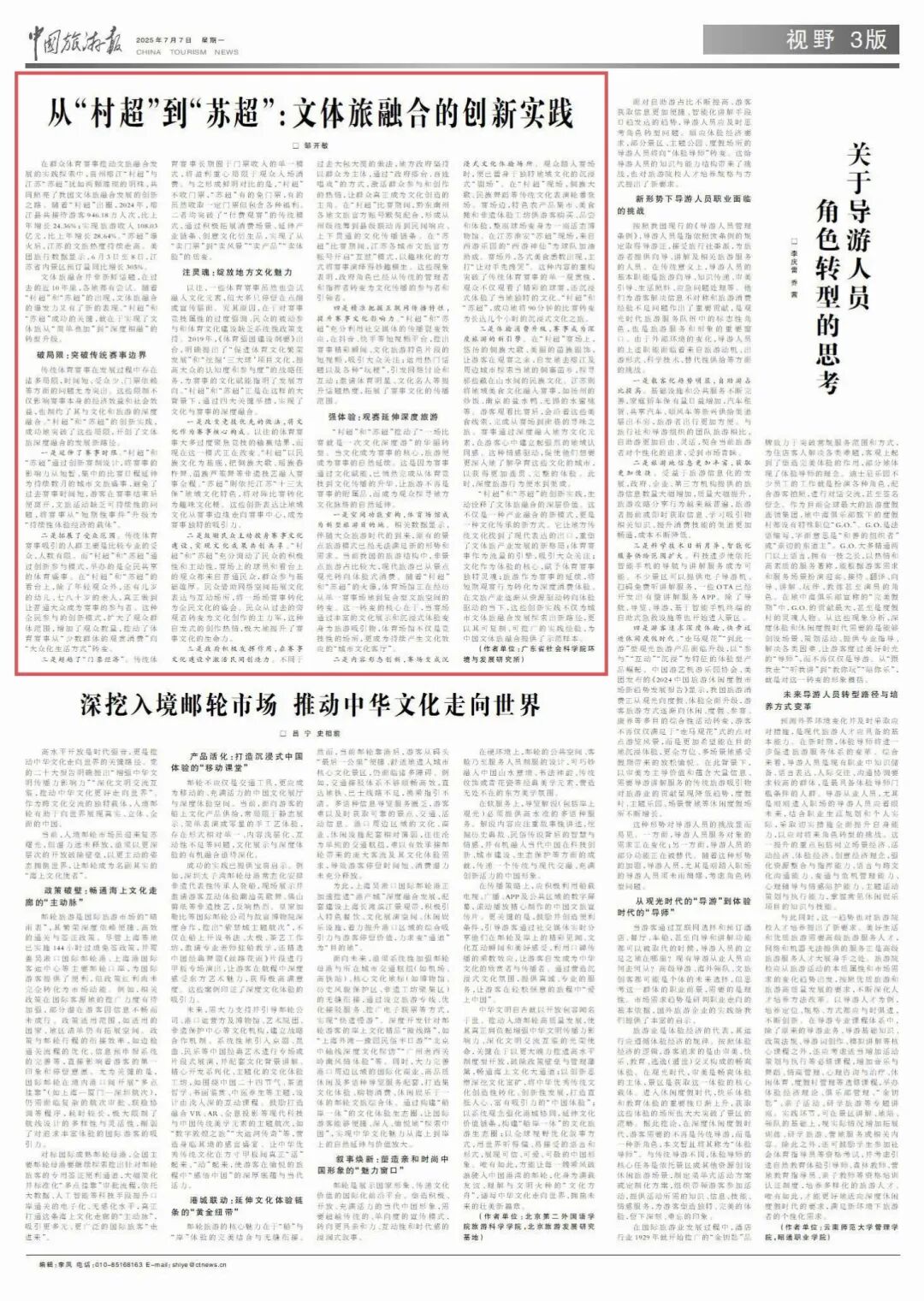 “村超”和“苏超”的创新实践,生动诠释了文体旅融合的深层价值。这不仅是一种产业融合的新模式,更是一种文化传承的新方式。它让地方传统文化找到了现代表达的出口,重塑了文体旅产业发展的新格局:体育赛事作为流量的引擎,吸引大众关注;文化作为体验的核心,赋予体育赛事独特灵魂;旅游作为赛事的延续,将短期观赛行为转化为深度消费体验。在文旅产业逐渐从资源驱动转向体验驱动的当下,这些创新实践不仅为城市文体旅融合发展探索出新路径,更以其可复制、可推广的实践经验,为中国文体旅融合提供了示范样本。