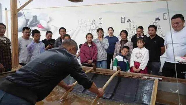 位于丹寨县以北约40公里的石桥村,是一个以古法造纸闻名遐迩的苗族村寨,当地村民从事造纸业已有2000多年的历史。2006年,石桥皮纸制作技艺被正式列入首批国家级非遗名录。现今,石桥造纸技艺的传承人承袭古老技术,巧妙融入苗族文化元素,形成了既包含造纸工序学习,又符合现代审美需求的“花草纸”制作等非遗研学项目。目前石桥村拥有2位国家级皮纸制作技艺代表性传承人,古法造纸研学基地共有6家。