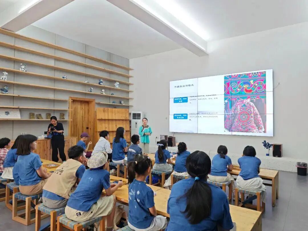 在苗族蜡染技艺的研学过程中,虽然技艺的学习占据重要地位,但最核心的目标是使研学者能够深刻领悟苗族文化的内在精髓。这种文化精髓恰恰深藏于那些生动逼真的图像符号之中。因此,每当在研学者观察画娘绘制蝴蝶图案时,当地的非遗传承人就会讲起“蝴蝶妈妈”的神话故事。在苗族古歌中“老妈妈”便象征着苗族氏族社会的起源——蝴蝶。正是基于这样的象征,苗族先民在历史的长河中围绕蝴蝶妈妈建构了自己的信仰体系。由于苗族没有文字,这一关于氏族起源的蝴蝶图腾便通过一代代绣娘的精湛技艺呈现在每一位苗族女性的服饰之上。随着非遗研学的发展,越来越多的研学者走进丹寨,听苗族故事、穿苗族衣服、唱苗族古歌,这只蕴含着中华民族最原始的哲学智慧和“人类命运共同体”深刻理念的蝴蝶妈妈,正随着一块块苗族蜡染作品飞向更广阔的世界。凭借这些充满民族民间特色的叙事类型和表达方式,更多的传统文化正在悄然无声地渗透并深刻影响研学者的认知世界,进一步丰富和多元化其文化视野。这一趋势对于深入理解中华民族文化多元一体、多民族历史悠久的交往交流交融历史具有极其重要的意义。