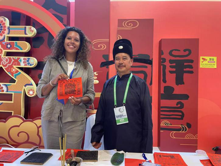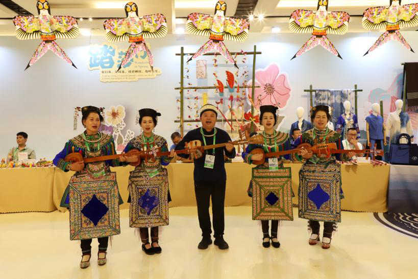 “魅力非遗·国际大展”活动板块中,三月三(报京三月三)、布依族“三月三”、布依戏、侗族刺绣、农历二十四节气(石阡说春)、侗族琵琶歌进行了全方位展示。通过现场技艺表演、实物展览等形式,让观众近距离感受贵州非遗的独特魅力。侗族琵琶歌的歌者们欢快的舞步和激昂的琵琶音乐,展现了侗族人民热情奔放的性格,农历二十四节气(石阡说春)的“春官”身着传统长袍,头戴乌纱帽,手持拴着红布条、麻丝和青纸的“春牛”,吸引了众多国际友人的目光。
