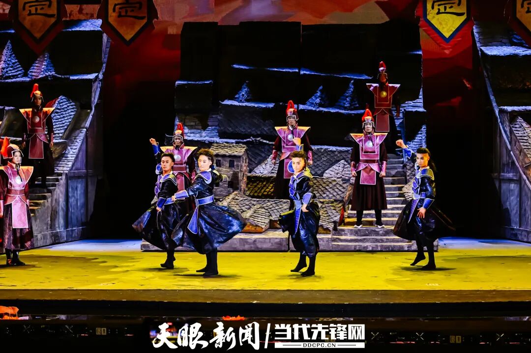 华灯初上,安顺市文化中心剧场内座无虚席。震撼的灯光舞美、高亢的屯堡山歌、精美的明代服饰,还有演员们充满艺术性的表达,将六百年前大明王朝征南并屯田戍边的恢弘历史娓娓道来。
