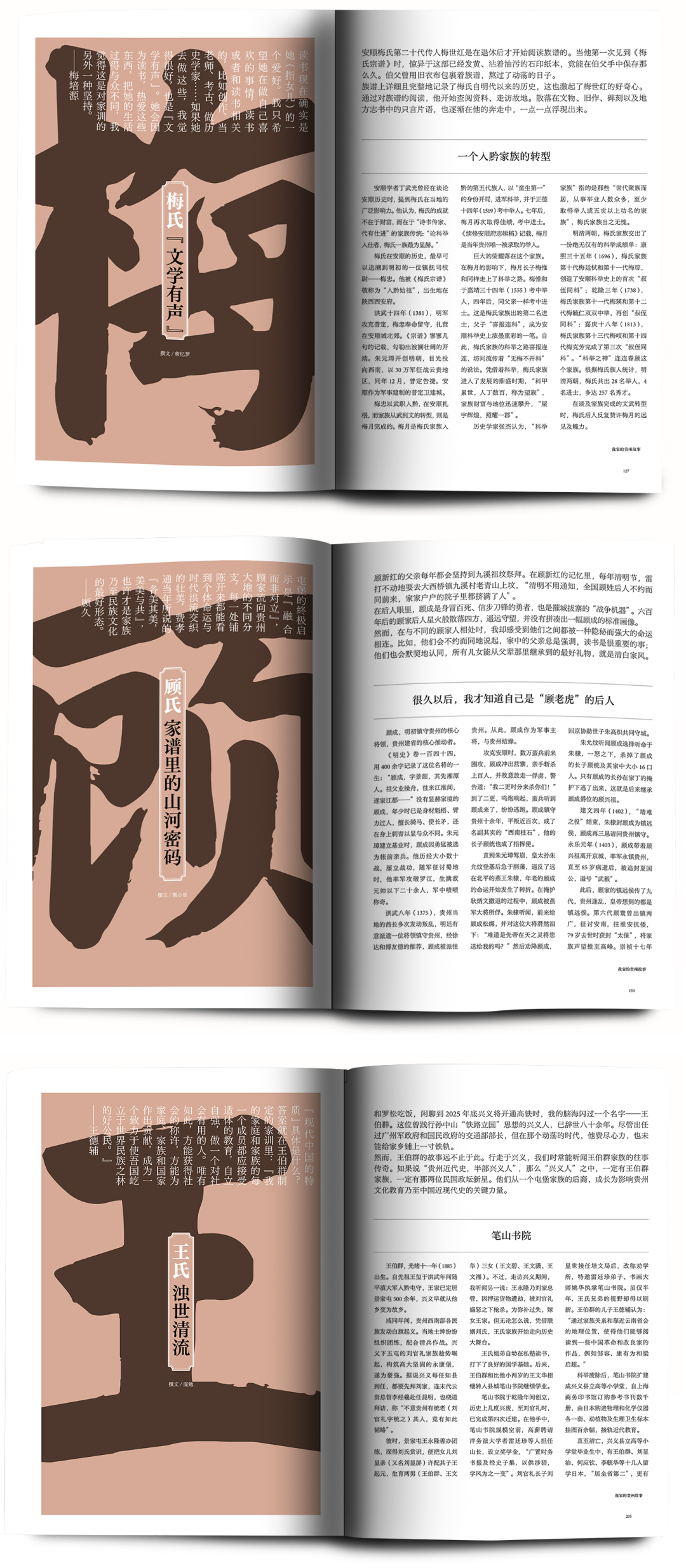 而让历史血肉丰满的,是那些延续至今的家族故事。书中特设“我家的贵州故事”专题,通过顾氏、梅氏、王氏这三支屯军后代的家族叙事,呈现六百年家国命运的紧密相连。无论是安顺梅氏“文学有声”的家训,推动家族从军户转型为科举文脉;还是兴义王氏从屯堡子弟成长为近代风云人物的奋进足迹;或是顾氏镇远侯一脉“忠勇报国”的门风承传——这些都不是尘封的往事,而是依然鲜活的家族记忆。正是这些具体而微的生命轨迹,让屯堡文化成为一部仍在续写的“活态传奇”。