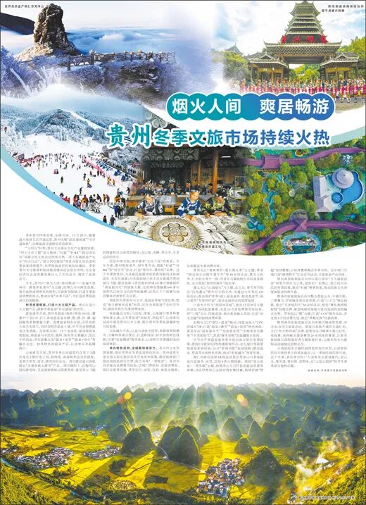 今冬,贵州以“烟火人间·爽居畅游——走遍大地神州 醉美多彩贵州”为主题,统筹九市州特色资源,借力高铁成网带来的便利,打破季节限制,打造冬季旅游消费新热点,推动实现“淡季不淡”,为打造世界级旅游目的地赋能。