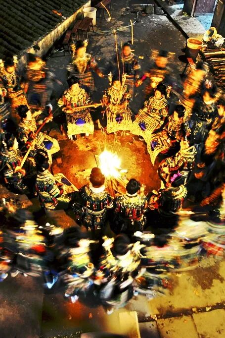 这是苗族村寨最常见的欢庆场面。