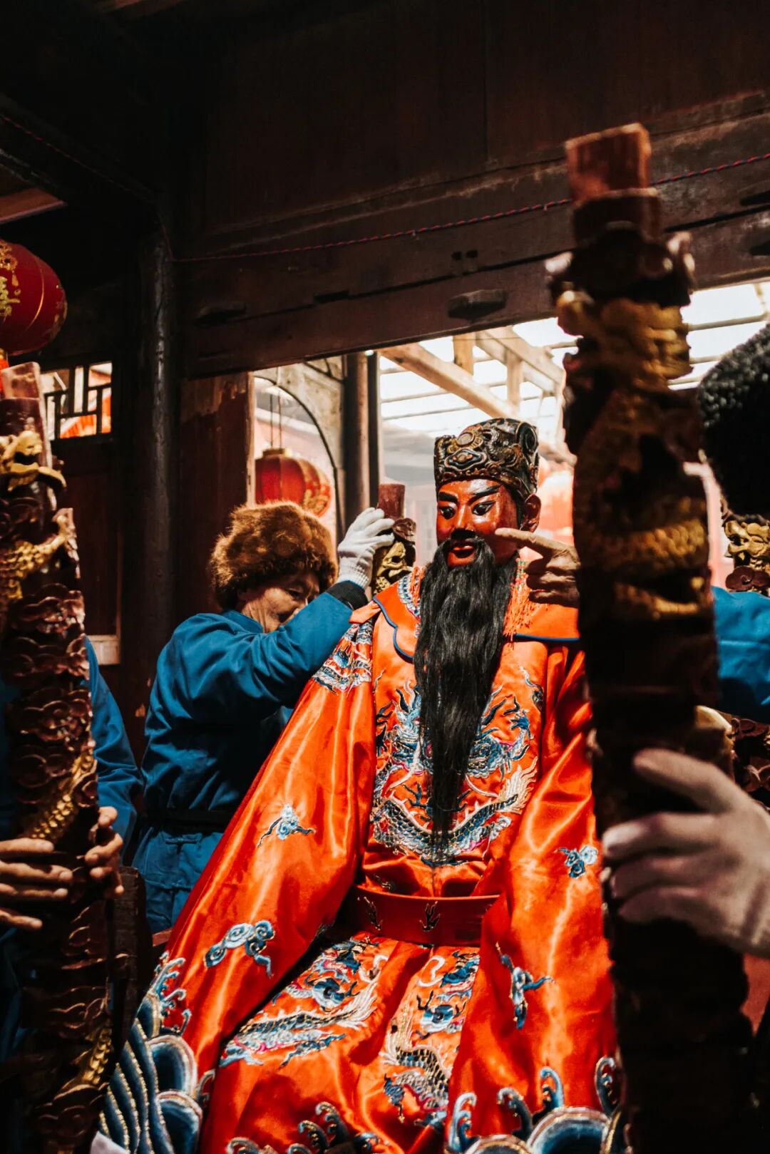 “抬汪公”活动规模极大,必须全村参与。男女老少按长幼尊卑排列,旌旗招展,鼓乐齐鸣,换上新衣的汪公塑像被从庙中请出,一家一家地巡游过去,每到一处,村民都会点起鞭炮迎接,不过几百米的路程,往往要走上三四个小时。这种对仪式感的极致追求,就像是中国文化中“国之大事,在戎在祀”的微缩版本。