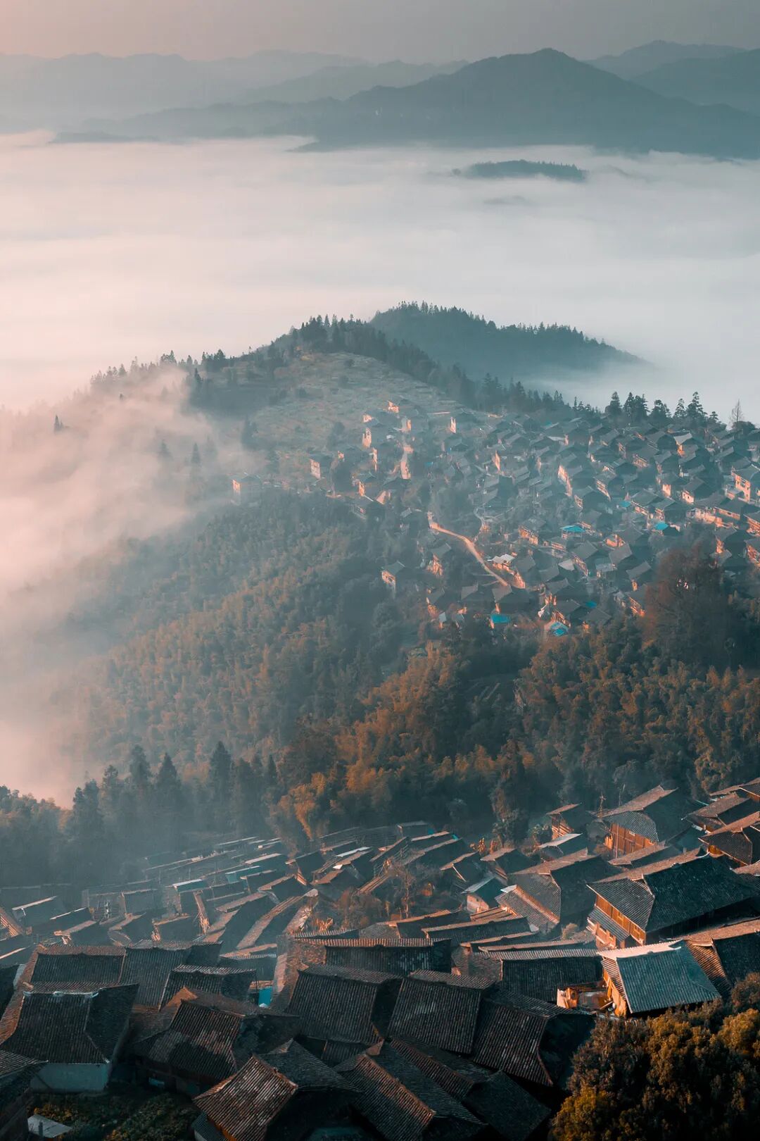 岜沙苗寨冬季云海。