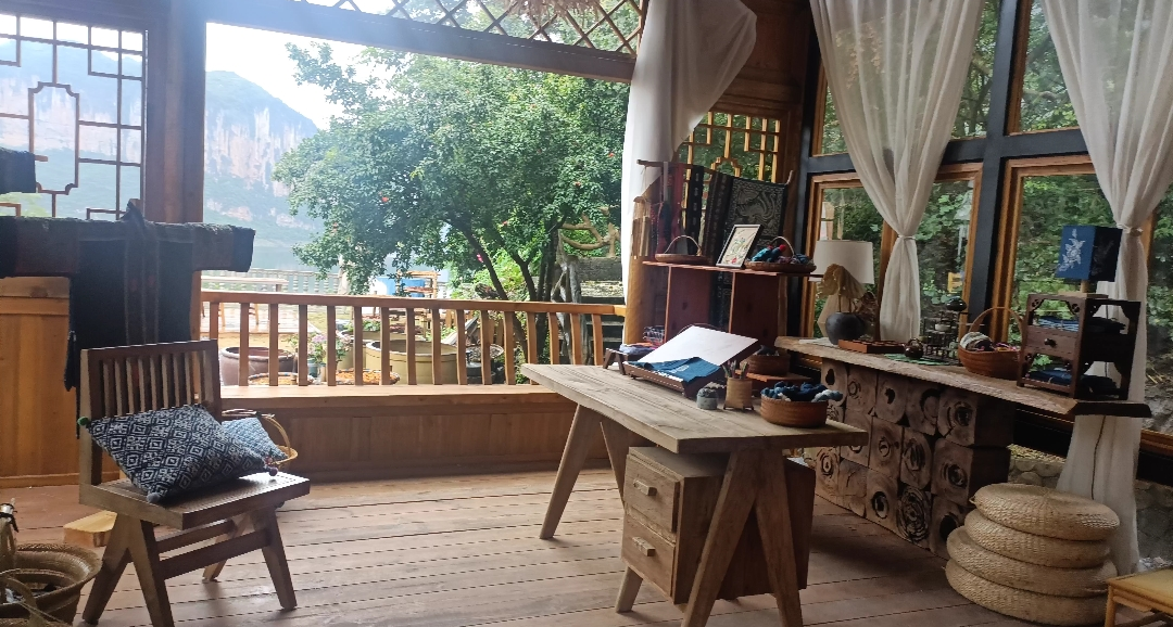 以剧中绣娘们飞针走线的绣坊为原型,依托“书香居”民宿打造,这里因正对着“书香童子”景观而得名,左边天竹峰、右边大鹏展翅,视野极佳,山水与人文完美融合。
